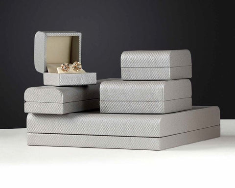 An Allure exclusive, the brand new shape and atypical weave texture of the Contemporary Collection make this an outstanding choice for a signature box for your store. The trendy metallic colors are fashionable without being too flashy, keeping you at the cutting edge. Seven different sizes, soft velour inserts, and four colors give you all of the options you need to package your treasured jewelry collections.