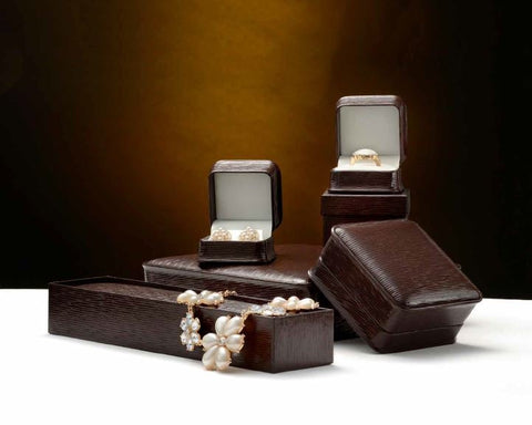The elegant baroque lines on the leather of the Exquisite Collection broadcasts the superior quality of the jewelry inside before the box is even opened. The leather soft interior along with the two-piece outer box that matches the unique texture of this collection, deem this box the optimal choice. Offered in eight convenient sizes and three classic colors, with optional logo stamping.
