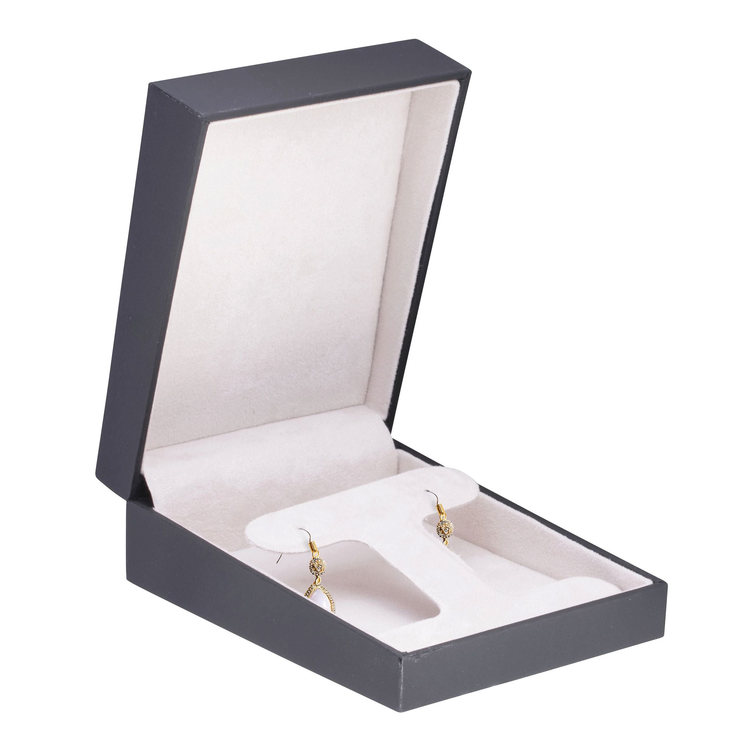 • Extended box with T-Style pad for longer, hanging earrings